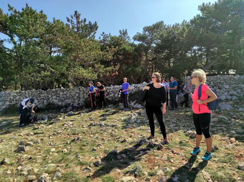 I što nam je drugo preostalo nego „podići jedra“ i autobus usmjeriti prema Baškoj na otoku Krku. A ta odluka bila je pun pogodak. Dok su se crni oblaci nadnosili nad Učkom i skrivali vrh Vojak u gustoj magli, bura s Velebita rastjerala je svaku sumnju da bi dan proveden na Krku mogao biti s kišom. Vrijeme koje nas je dočekalo u Baškoj bilo je onakvo kakvo se samo može poželjeti. Jedan manji dio odmah se odlučio zadržati na prelijepim plažama Baške, a drugi, više planinarski nastrojeni, uputili su se planinarskom stazom prema Mjesečevom platou, brdu koje se nalazi na 380 metra nadmorske visine.
