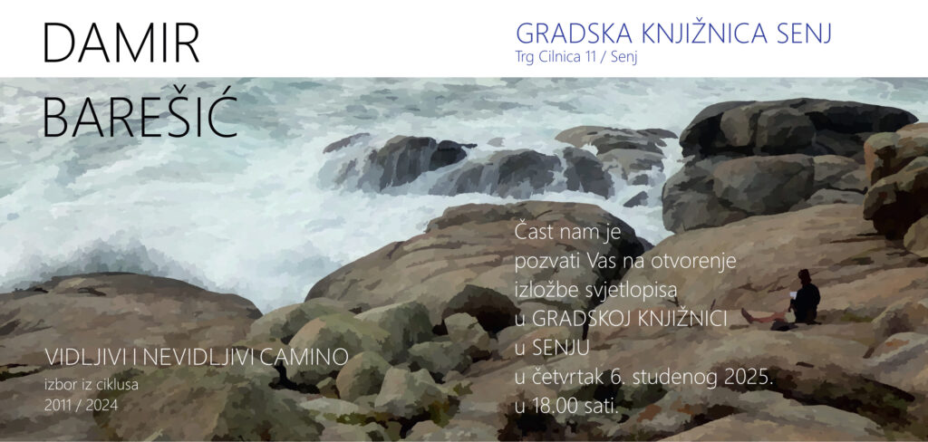 U četvrtak, 6. studenog 2025. godine u Gradskoj knjižnici u Senju otvorit će se izložba fotografija pod nazivom VIDLJIVI I NEVIDLJIVI CAMINO s kojom autor, Damir Barešić predstavlja novi izbor fotografija u putovanjima tijela i duše.